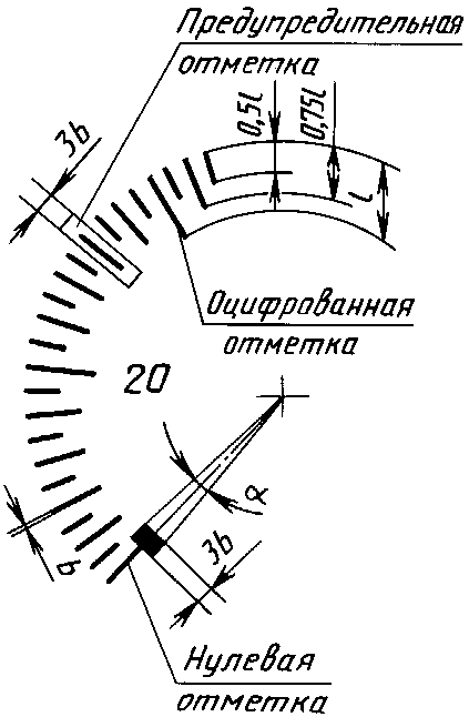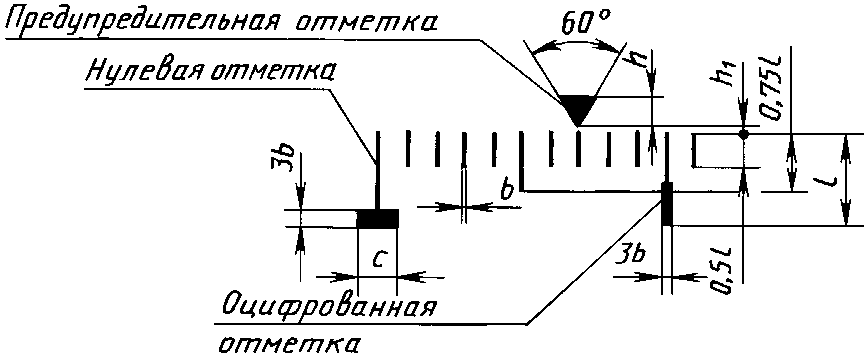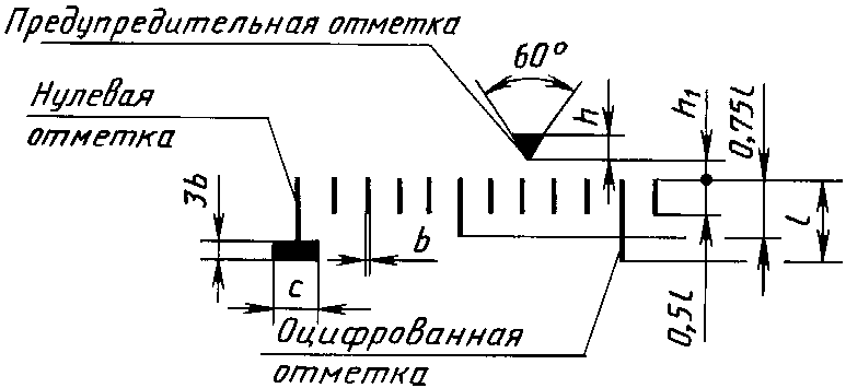 Предупредительная отметка должна находиться на одной из отметок шкалы.
