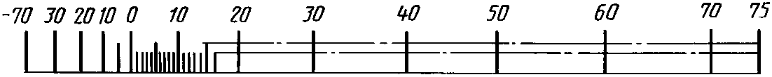 12. Примеры разделения температурной шкалы на интервалы и нанесение числовых отметок приведены в табл. 17.