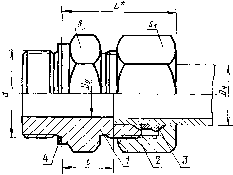 1 - штуцер по ГОСТ 21858-78; 2 - накидная гайка