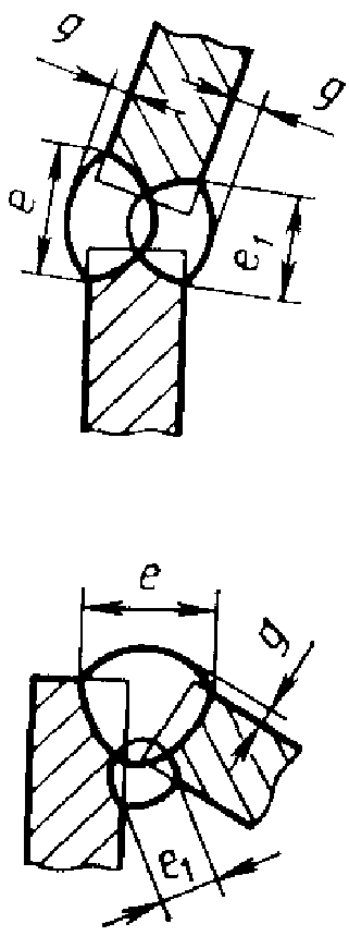 Обозначение соединения | Конструктивные элементы | Способ сварки | s | e = e1 | e | e1 | g = g1 | g | b | c +/- 1 | h +/- 1 | ||||||||||||||||