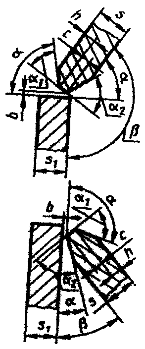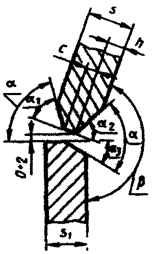 подготовленных кромок свариваемых деталей | сварного шва | 91° - 105° | 89° - 75° | Св. 90° | До 90° | ||||||||||||