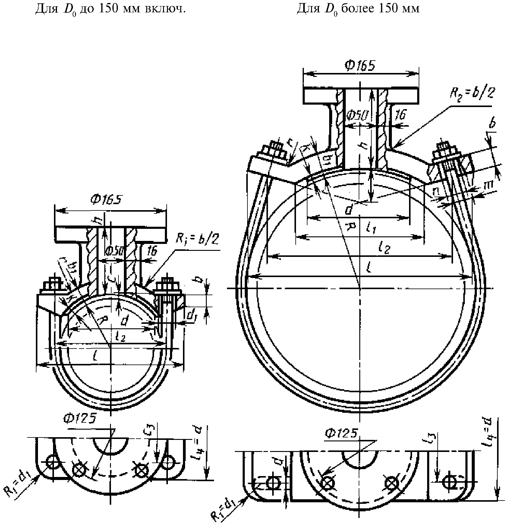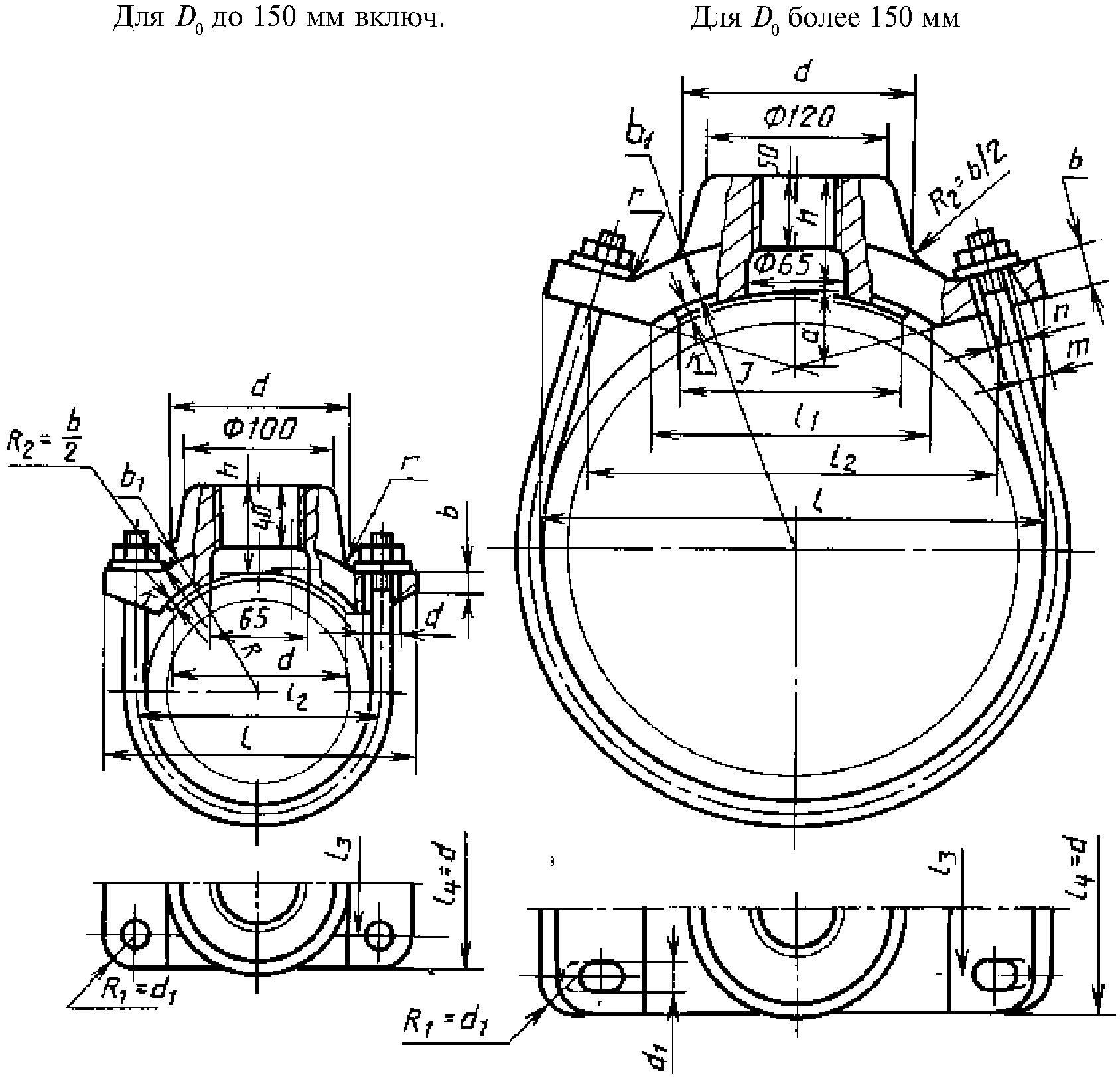 Условный проход D0 | h | l | d | l1 | l2 | l3 | r | a | b | b1 | c | k | d1 | n | m | r | Бандажи | |