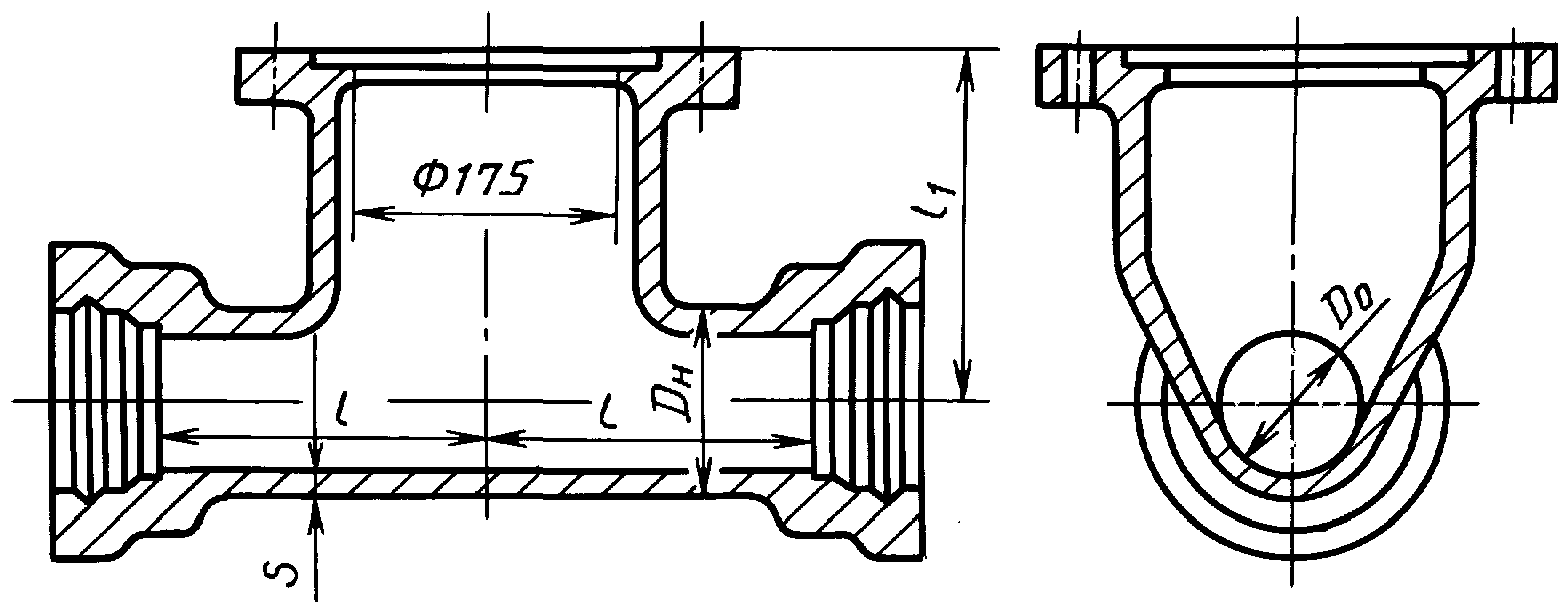 Условный проход ствола D0 | Обозначение размеров | Условный проход отростка d0 | Наружный диаметр ствола Dн | Толщина стенки ствола S | |||||||||||||||||