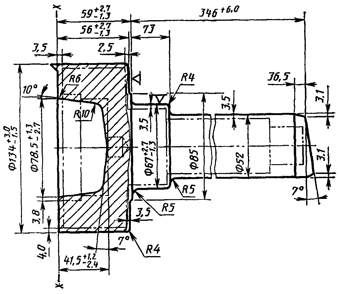 4. Размеры поковки и их допускаемые отклонения (черт. 29)