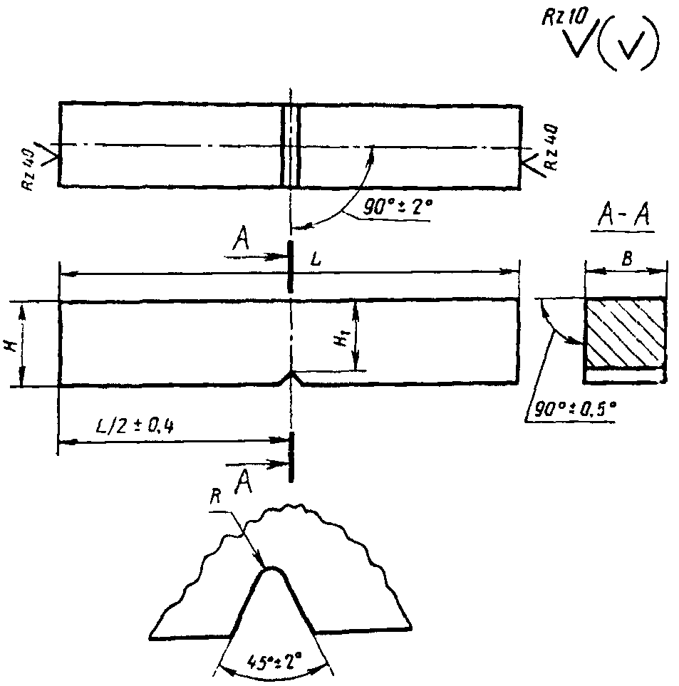 Образец с концентратором вида V