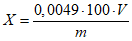 Массовую долю ортофосфорной кислоты (X) в процентах вычисляют по формуле