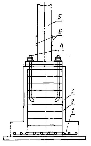 соединенные с арматурой фундамента; 5 - стальная колонна;