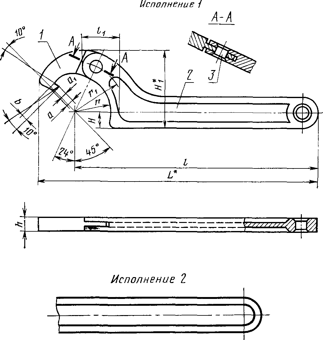 То же, шарнирного ключа для круглых гаек исполнения 2: