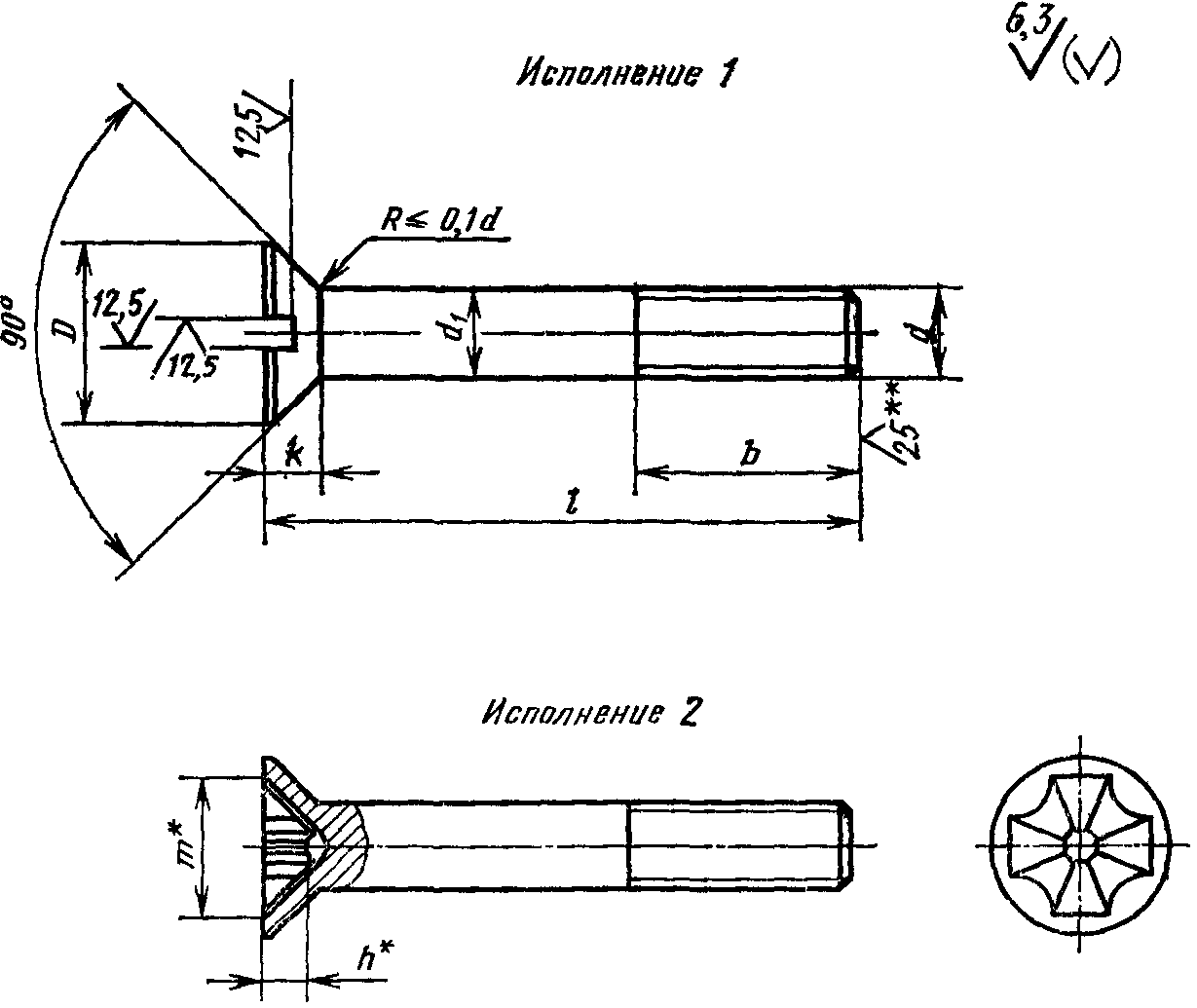 ** Для винтов, обработанных резанием, в остальных случаях не нормируют.