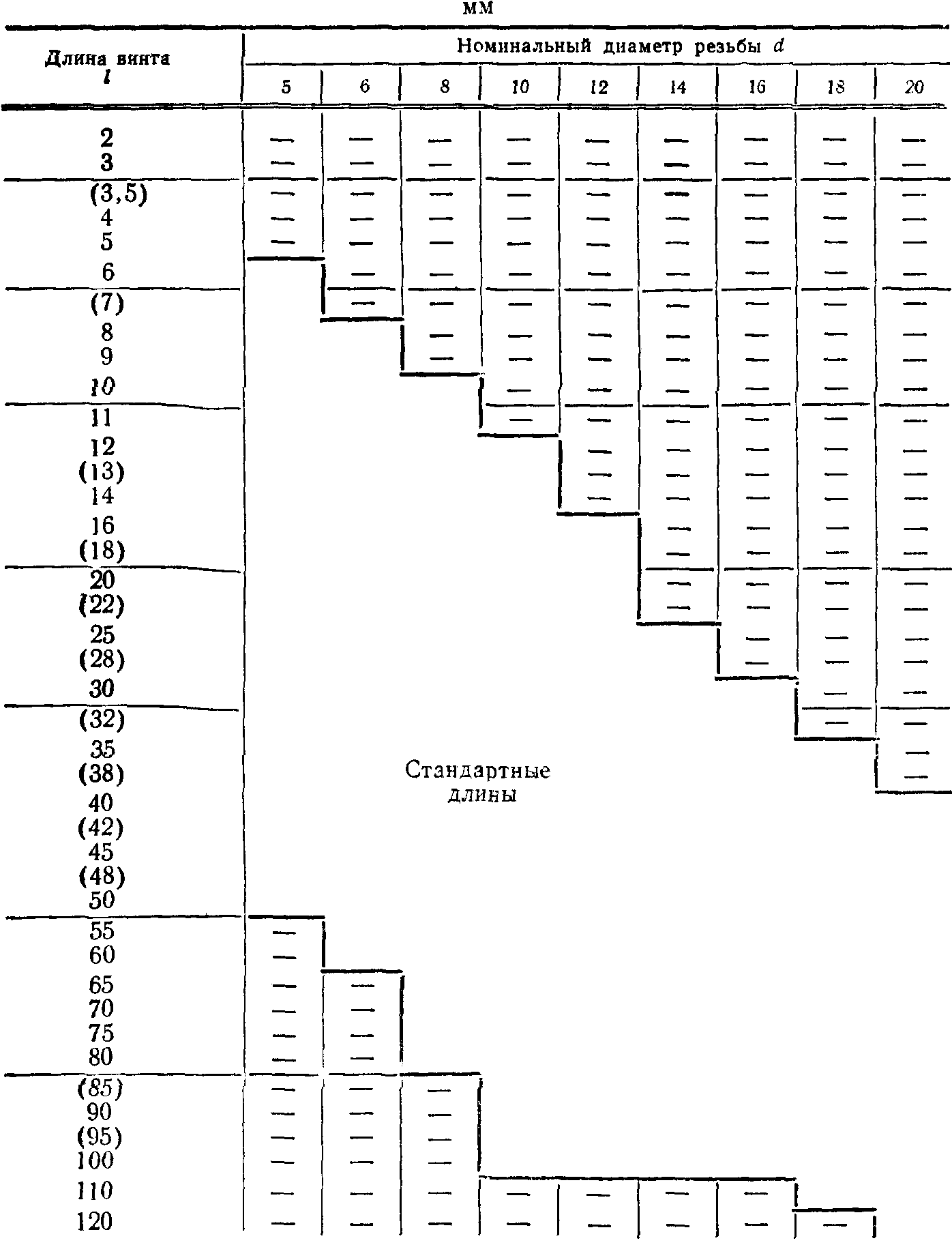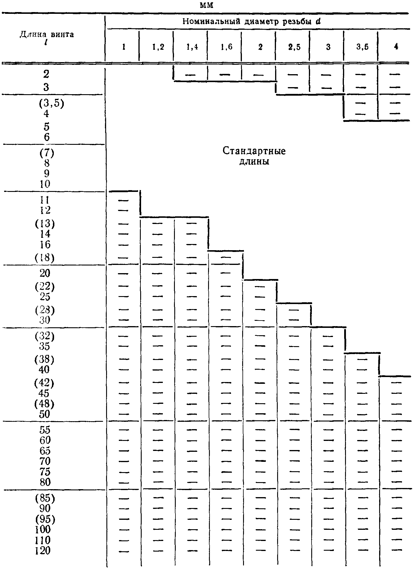 Примечания. 1. Длины винтов, заключенные в скобки, применять не рекомендуется.