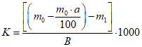 Массу клеевого слоя (К) в граммах, нанесенную на 1 м2 бумаги, вычисляют по формуле