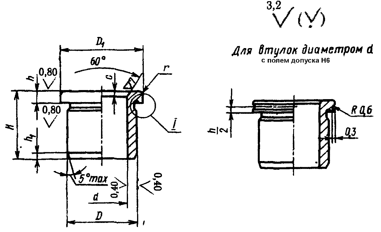 Обозначения втулок │ d │D │ H │ D │ h │h │ r │ с │ Масса