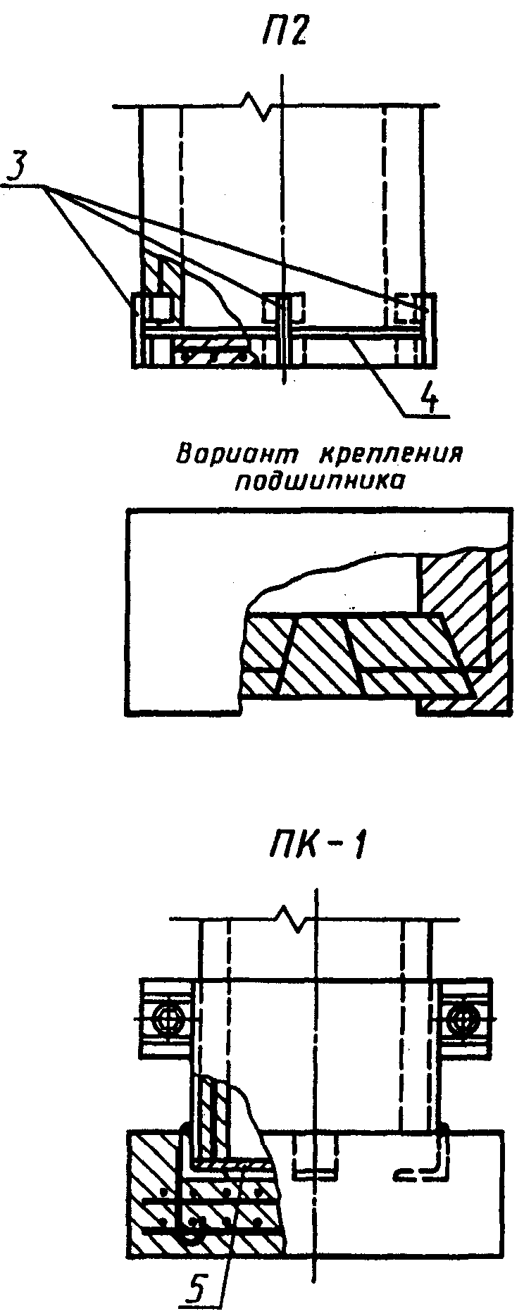 Крепление подпятников, изготовляемых отдельно (П1-П3, ПК-3) и совместно со стойками, приведено на черт.
