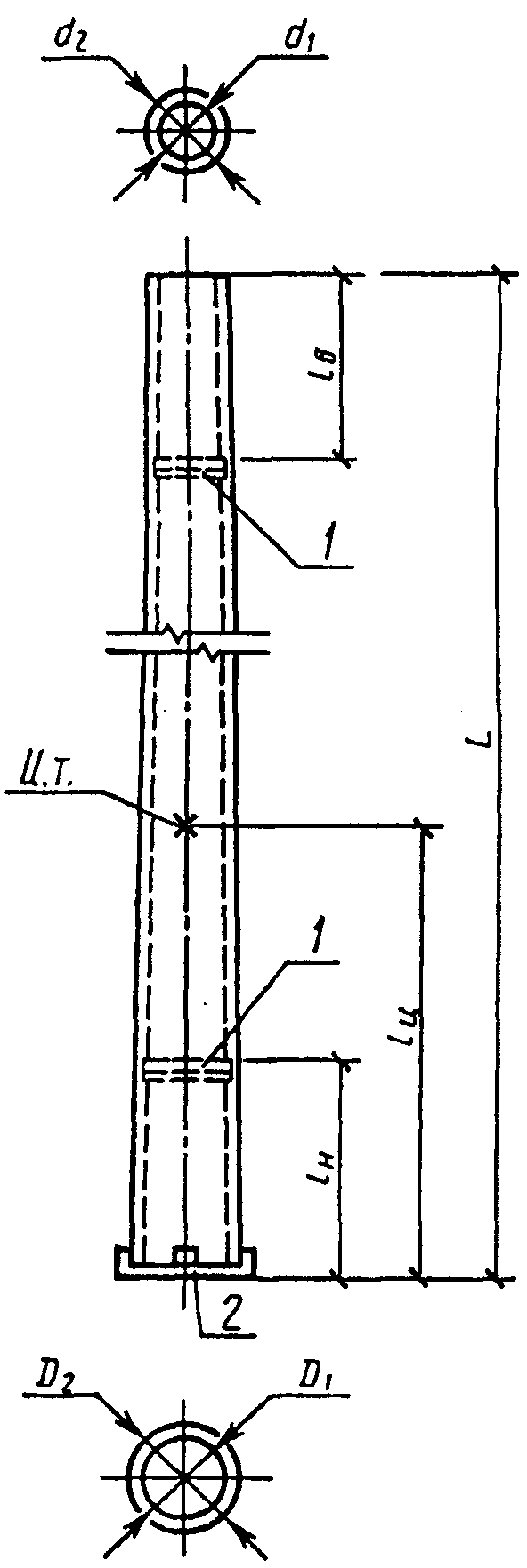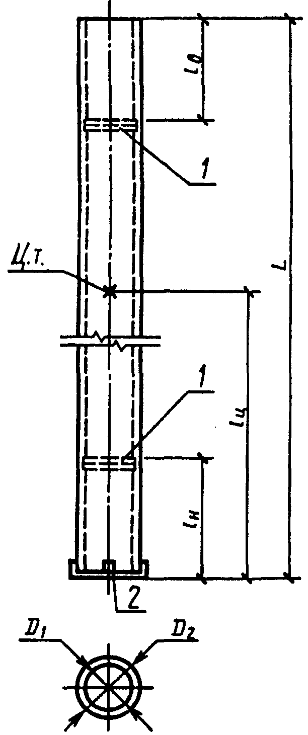 Примечания. 1. На действующем оборудовании допускается изготовление до 1 января 1988 г.: конических стоек длиной 22600 мм с наружными диаметрами в нижнем сечении 560 мм и в верхнем - 334 мм; цилиндрических стоек длиной 22200 мм с наружным диаметром 560 мм.