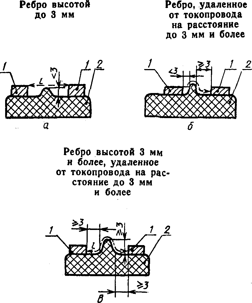 l - путь утечки; 1 - токопровод; 2 - основная