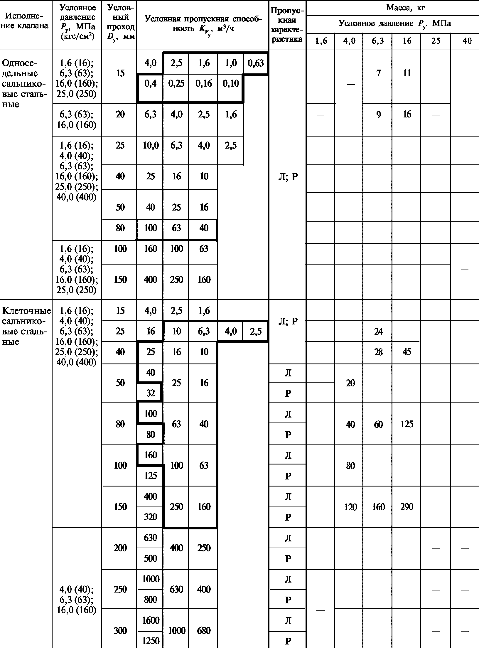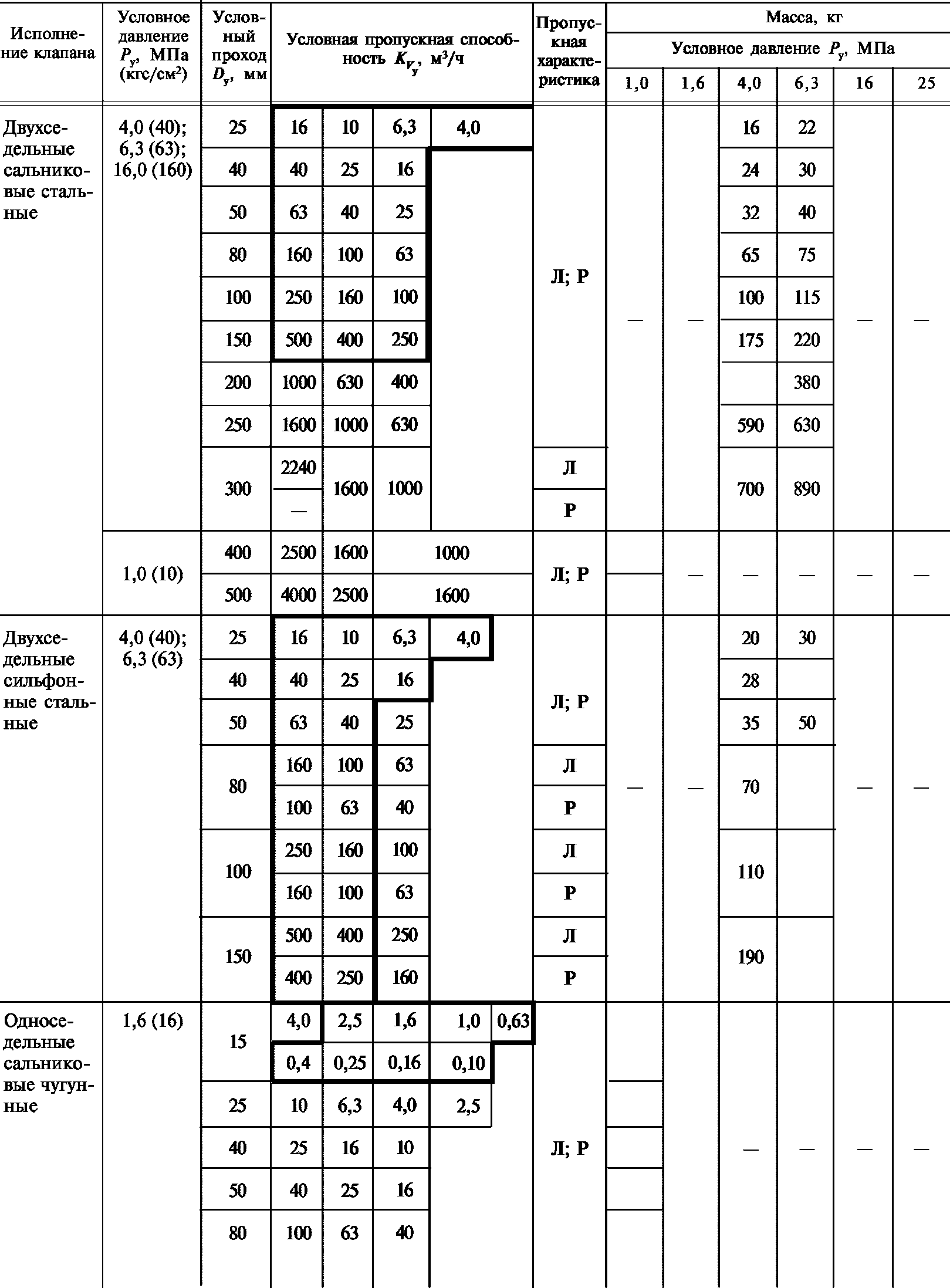 2. В графе "Пропускная характеристика" условные обозначения означают: "Л" - линейная, "Р" - равнопроцентная.