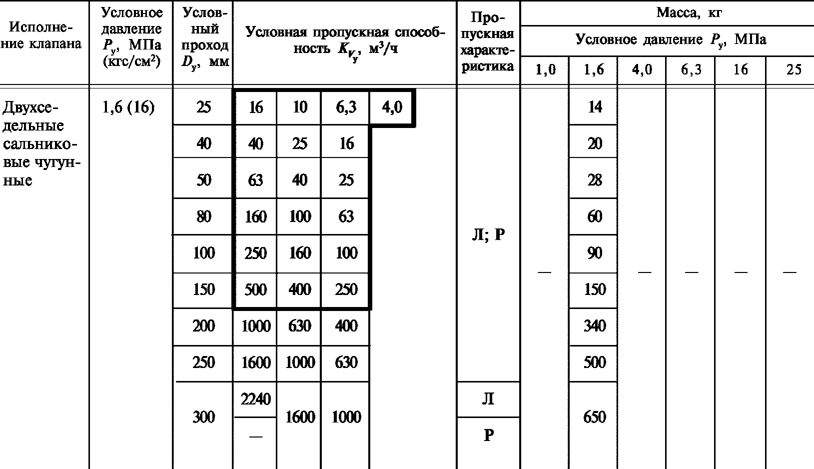 3. Масса указана для проходных фланцевых клапанов без учета массы исполнительных механизмов. Контролируемая масса клапанов в сборе и масса клапанов специального исполнения (с ребристой крышкой, с рубашкой обогрева, для дистанционного управления и других условий эксплуатации) должна устанавливаться в технических условиях на конкретные изделия.
