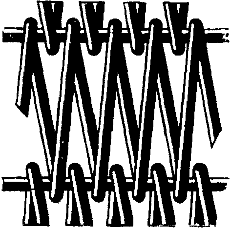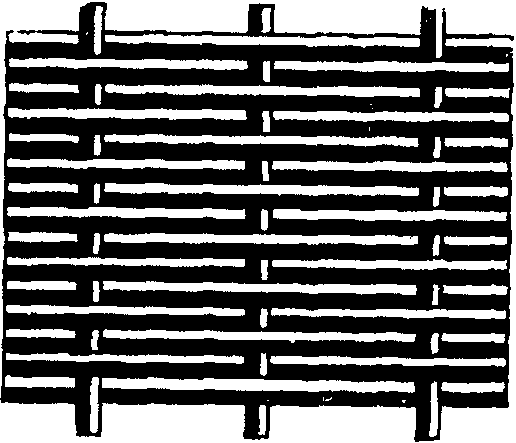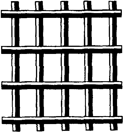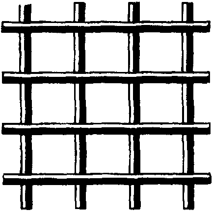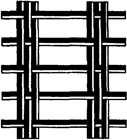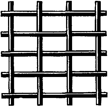 Сетка тканая полотняного переплетения "Семянка" | ![]() | Каждая проволока из пряди трех рядом расположенных проволок основы переплетается с каждой проволокой утка. Диаметр проволоки утка больше диаметра проволоки пряди основы | Сетка характеризуется размером стороны ячейки в свету и диаметрами проволоки основы и утка За размер стороны ячейки в свету принимается расстояние между соседними прядями основы и соседними проволоками утка | Между прядями основы от 10,0 до 22,0; между проволоками утка от 1,4 до 5,5 | Диаметр проволоки в пряди основы от 0,4 до 0,8, утка от 0,4 до 2,0 | Стальная термически обработанная низкоуглеродистая (светлого отжига, черного отжига, луженая, оцинкованная) проволока | Для разделения сыпучих тел по крупности и форме зерна |