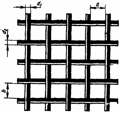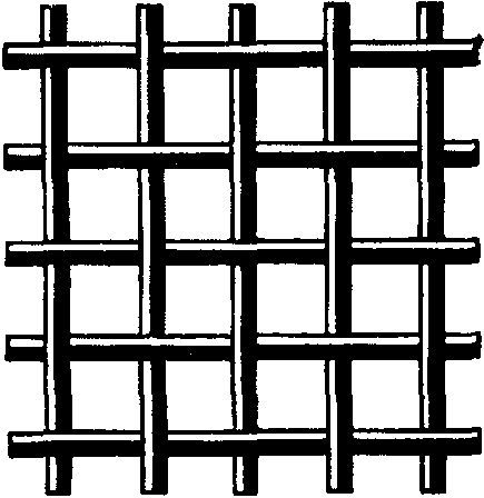 Сетка тканая полотняного переплетения с квадратными ячейками | ![]() | Переплетение проволок основы и утка через одну проволоку | Сетка характеризуется размером стороны ячейки в свету и диаметром проволоки. За размер стороны ячейки в свету принимается расстояние между соседними проволоками основы или утка | От 0,04 до 20,0 | От 0,03 до 3,0 | Стальная термически обработанная низкоуглеродистая (светлого отжига, черного отжига, оцинкованная, луженая), термически обработанная высоколегированная (травленая, светлого отжига) проволока Проволока из латуни, фосфористой бронзы, платины, никеля | Для разделения сыпучих тел по крупности и фильтрации |
