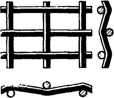 Сетка рифленая с прямоугольными ячейками | ![]() | Проволоки основы и утка имеют изгиб рифления в местах переплетения | Сетка характеризуется размером стороны ячейки в свету и диаметром проволоки. За размер стороны ячейки в свету принимается расстояние между соседними проволоками основы и соседними проволоками утка | Между проволоками основы от 12,0 до 70,0; утка от 6,0 до 9,0 | От 2,2 до 3,5 | Стальная термически необработанная высоколегированная и углеродистая проволока | Для классификации окатышей угля |