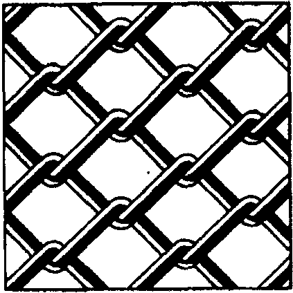 Сетка плетеная одинарная с квадратными ячейками из плоских спиралей, правая (левая) | ![]() | Переплетение плоских спиралей, образующих квадратную ячейку | Сетка характеризуется размером стороны ячейки в свету и диаметром проволоки. За размер стороны ячейки в свету принимается расстояние между противоположными проволоками, образующими ячейку | От 10 до 100 | От 1,6 до 5,0 | Стальная термически необработанная низкоуглеродистая (без покрытия, оцинкованная, покрытая пластиком) и высоколегированная проволока | Для ограждения - крепления горных выработок, для разделения сыпучих тел по крупности |