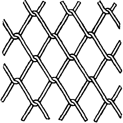 Сетка крученая с трапециевидными ячейками | ![]() | Свивка проволок, перекрещивающихся под углом 120°, с третьей проволокой, образующей большое основание трапеции | Сетка характеризуется размером ячейки в свету и диаметром проволоки. За размер ячейки в свету принимается расстояние между противоположными сторонами шестигранника | 50,0 | 1,6 | Стальная термически обработанная низкоуглеродистая (черного отжига, оцинкованная) проволока. Сетка оцинкованная в полотне | Для ограждения, изготовления клеток в сельском хозяйстве |