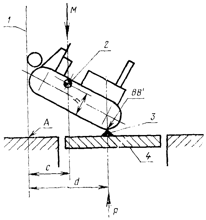 3 - призматическая опора; 4 - весы; M - масса машины;
