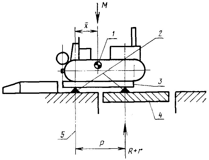 4 - весы; 5 - линия отсчета; M - масса машины; r - реакция