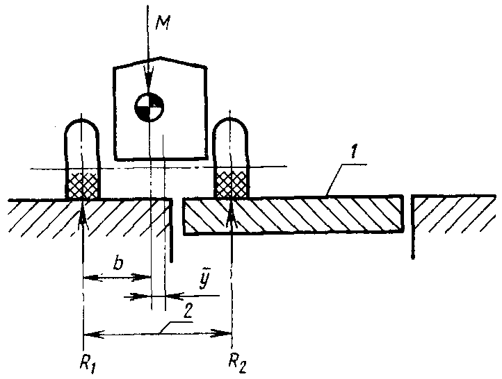 1 - центр тяжести; 2 - призматические опоры; 3 - платформа;
