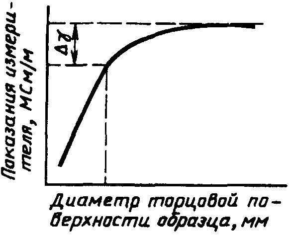 в МСм/м определяют по графику как разность между значением электропроводимости образца наибольшего диаметра и кажущейся электропроводимостью образца диаметром, соответствующим диаметру контролируемого объекта.