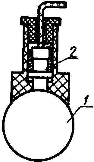 Преобразователь устанавливают перпендикулярно к цилиндрической поверхности с помощью призмы (черт. 4). Регистрируют отклонение стрелки индикатора вихретокового измерителя в сторону больших значений электропроводимости или показания цифрового табло.