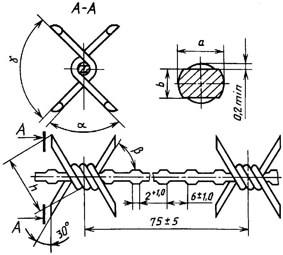 чертеже). Допускается притупление и погнутость не более одного шипа на каждом метре колючей проволоки.