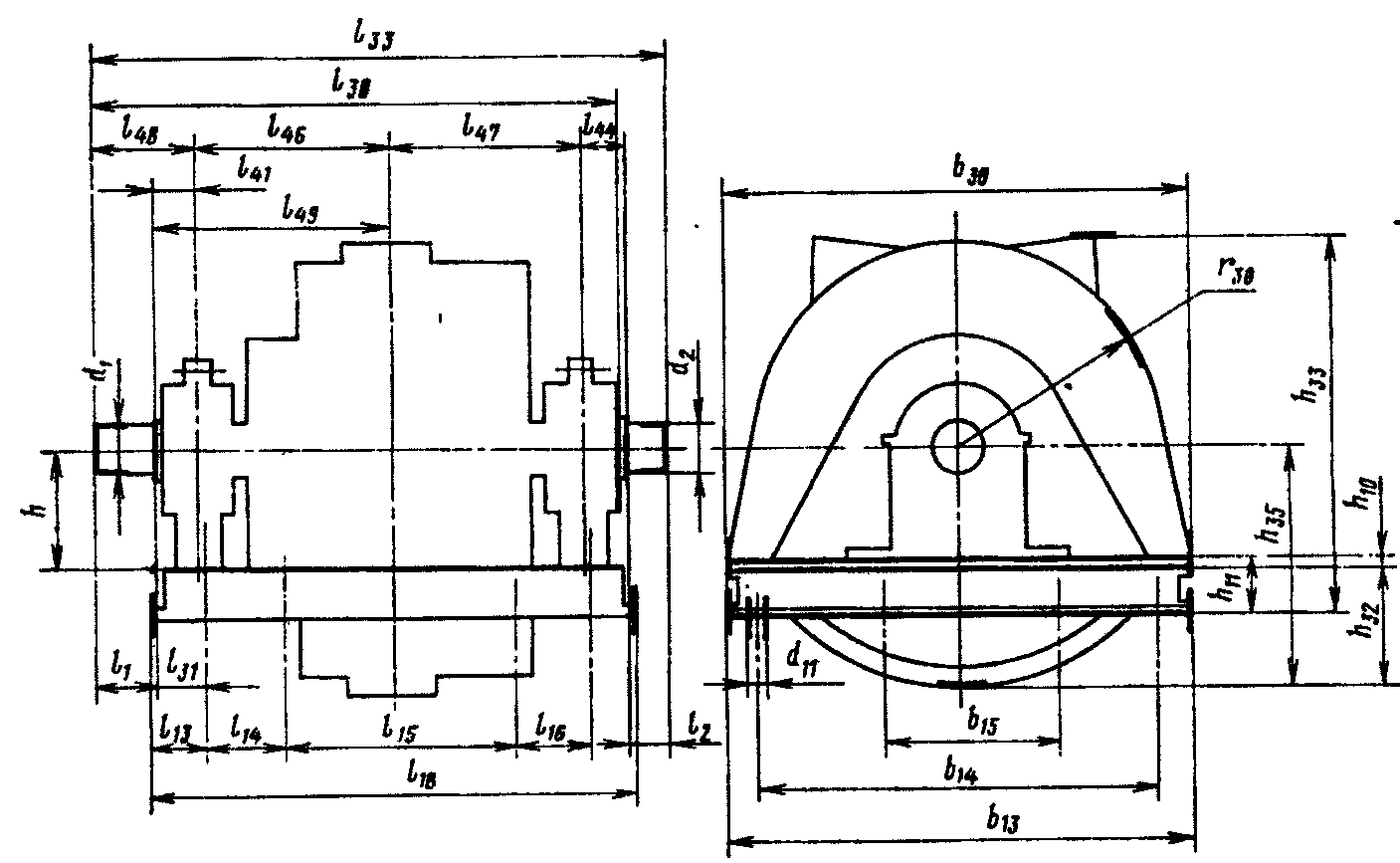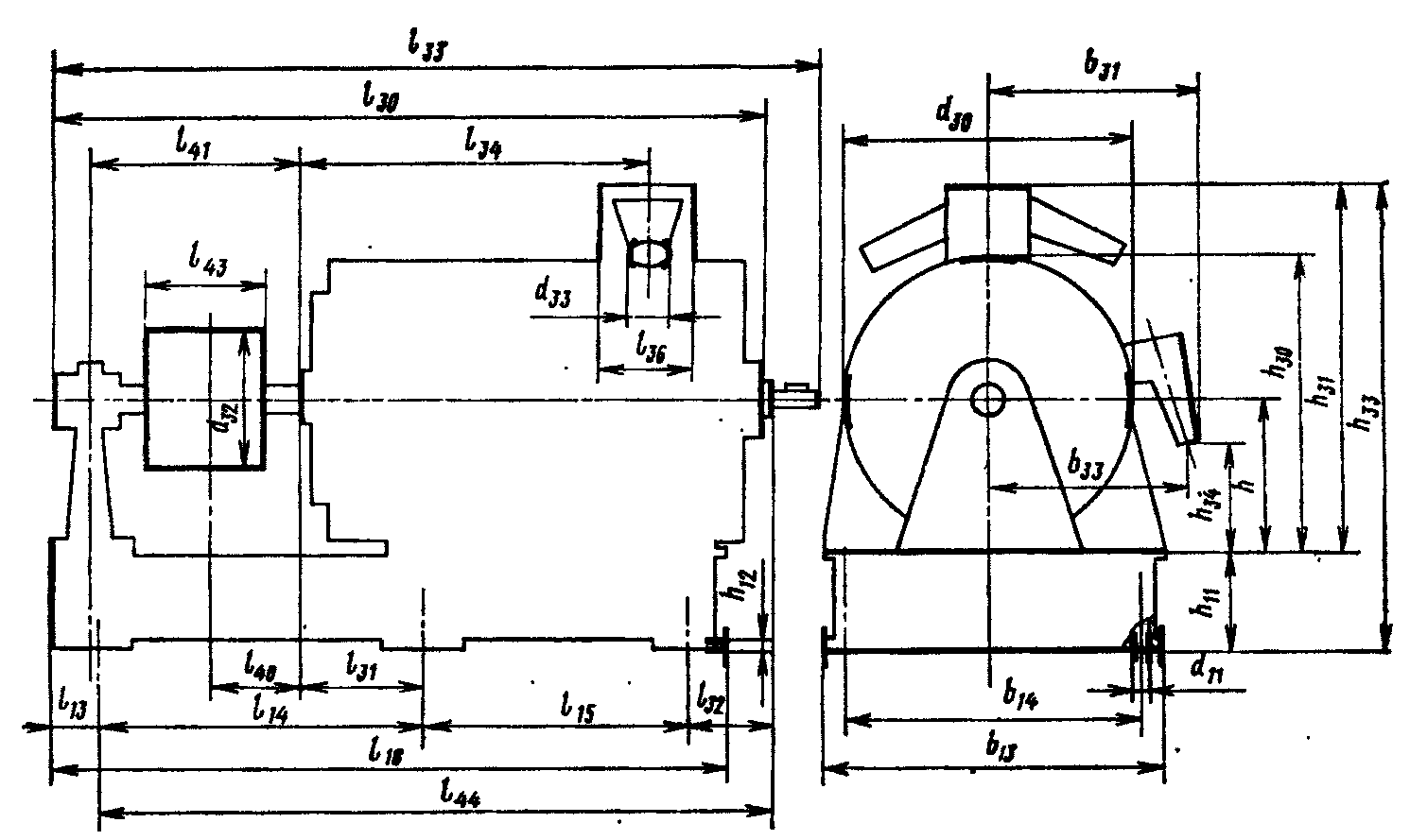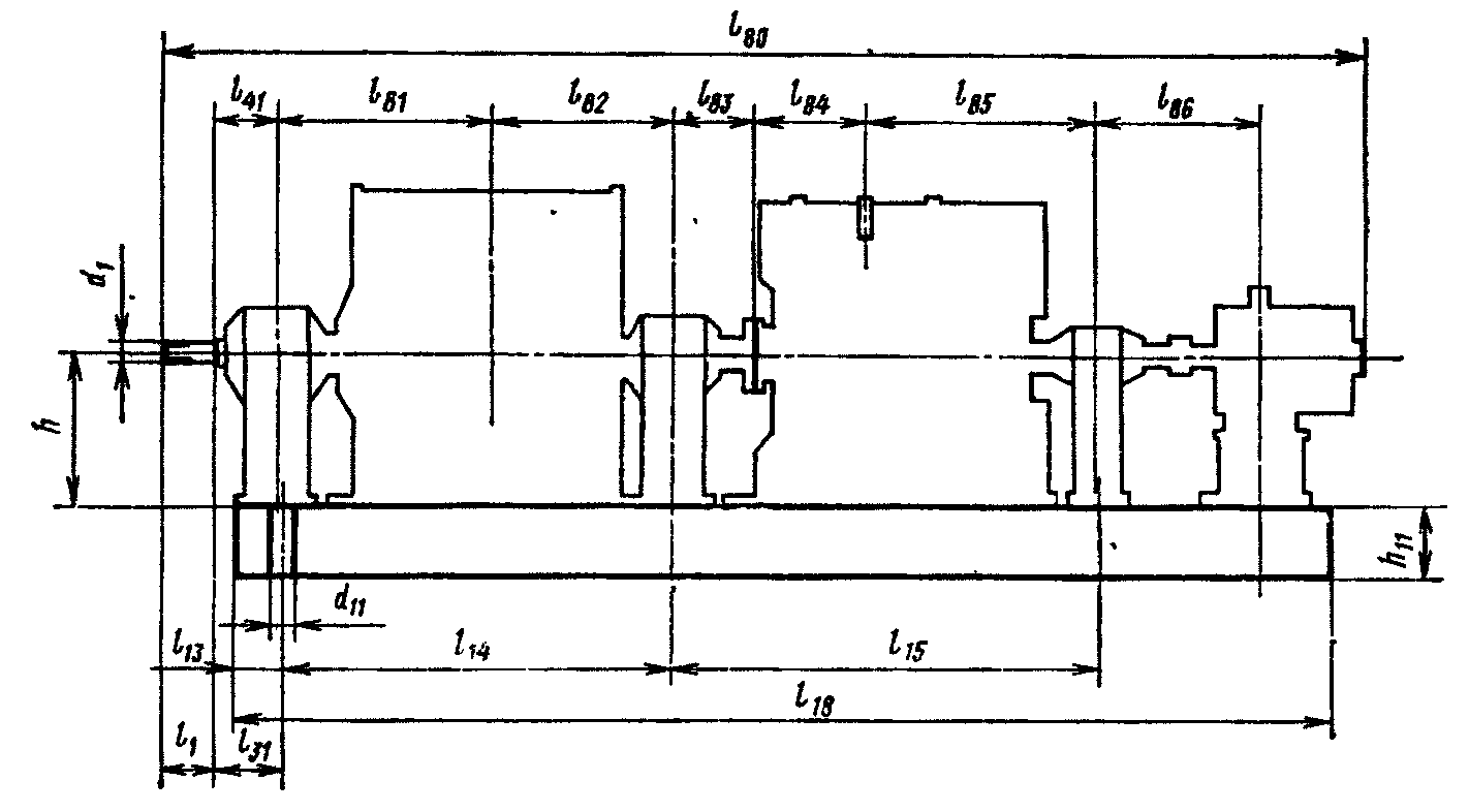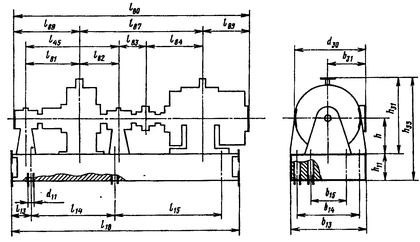 l45, l46, l47 | Расстояние между осями стояковых подшипников машины или от оси машины до оси стоякового подшипника | |