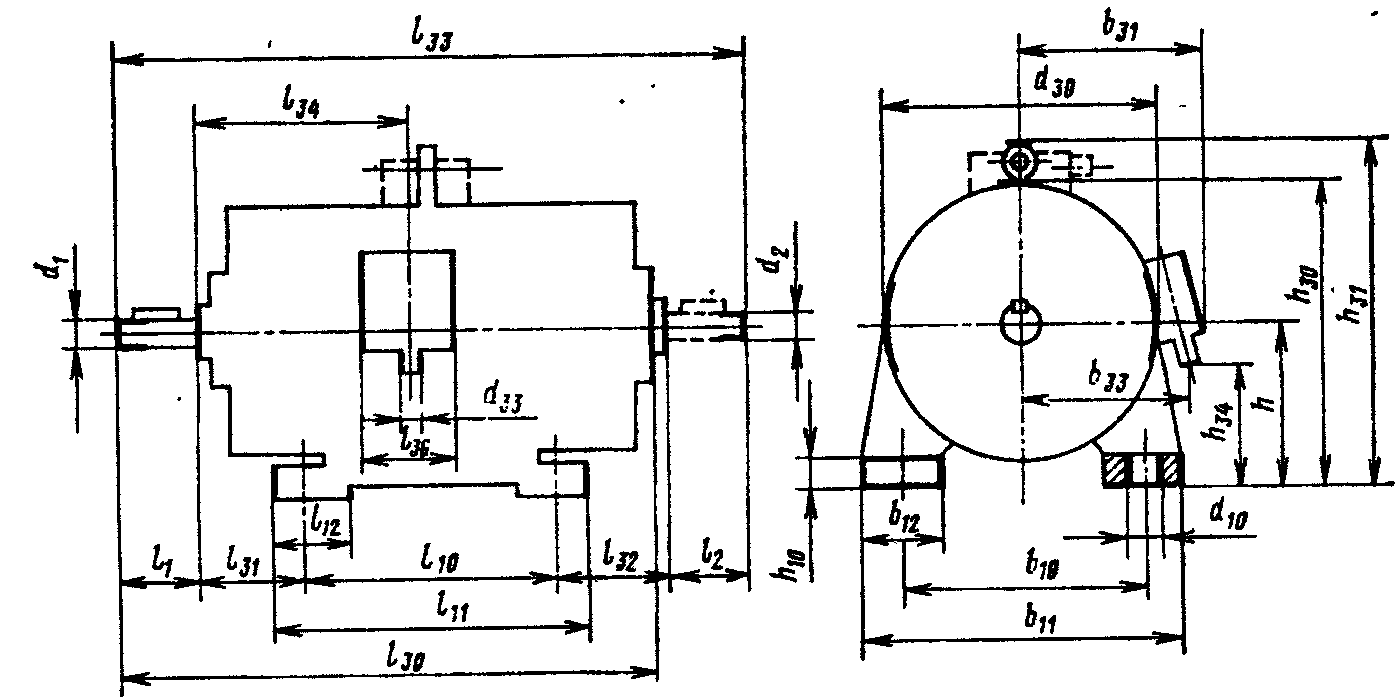 l10 | Расстояние между осями отверстий под крепежные болты (в лапах, станине, корпусе) | |