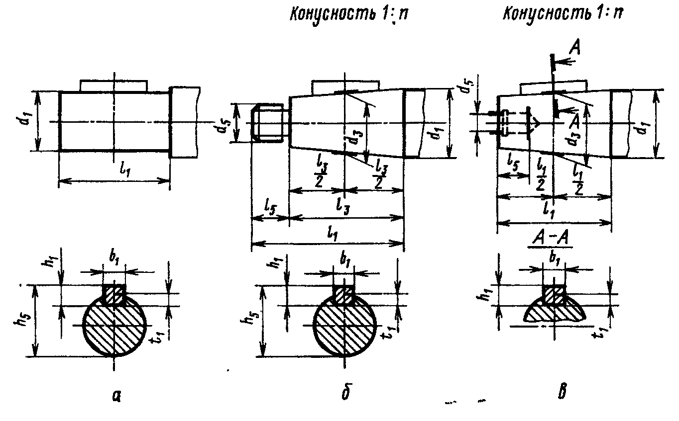 d1 | Диаметр выступающего цилиндрического конца вала, диаметр посадочного участка вала под шкиф или диаметр большого основания конуса при коническом конце вала | |