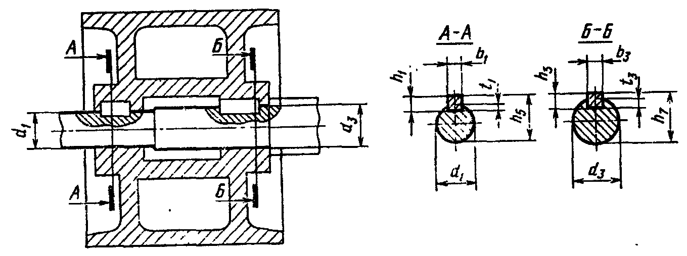 h1, h3 | Высота шпонки на выступающем конце вала | |
