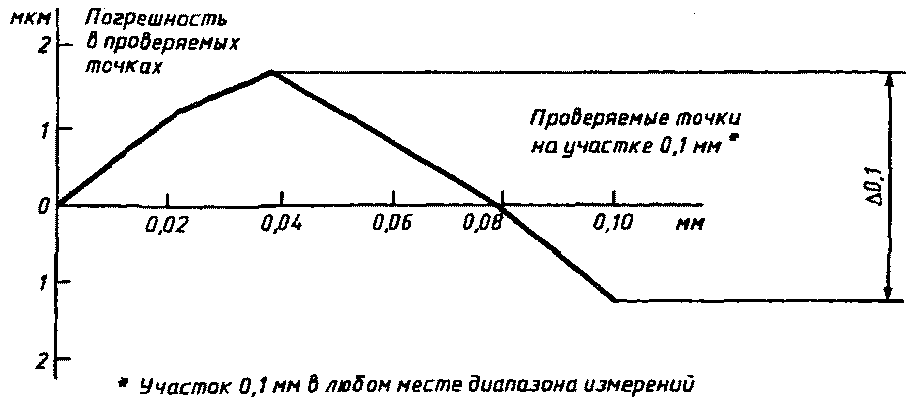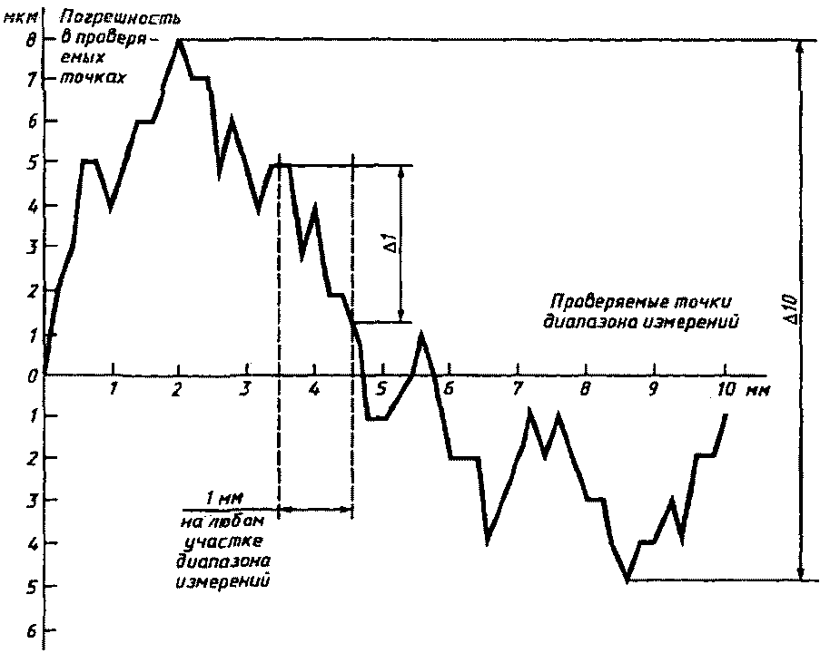 За колебание измерительного усилия при изменении направления движения измерительного стержня принимают разность усилий в проверяемой точке в середине диапазона измерений и при переходе за нее на 1 - 2 мм и возврате в проверяемую точку.
