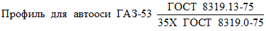 Пример условного обозначения профиля для передней оси автомобиля ГАЗ-53 из стали марки 35Х: