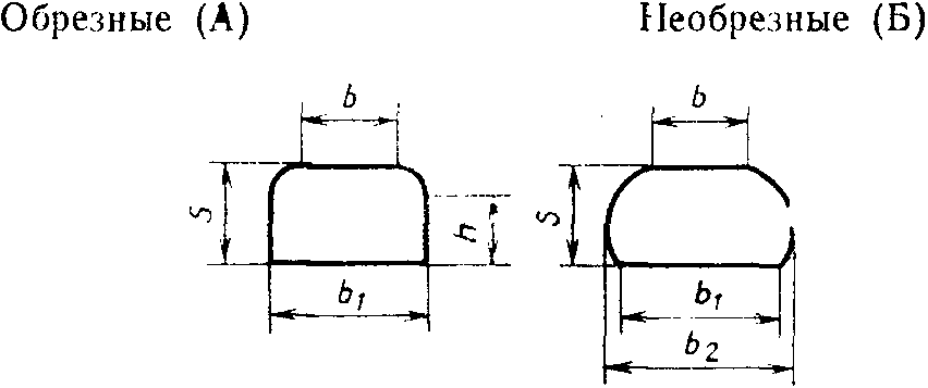 1.1. По форме поперечного сечения переводные брусья подразделяют на два вида - обрезные и необрезные (см. чертеж).