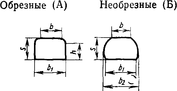 1.1. По форме поперечного сечения шпалы подразделяют на два вида - обрезные и необрезные (см. чертеж).