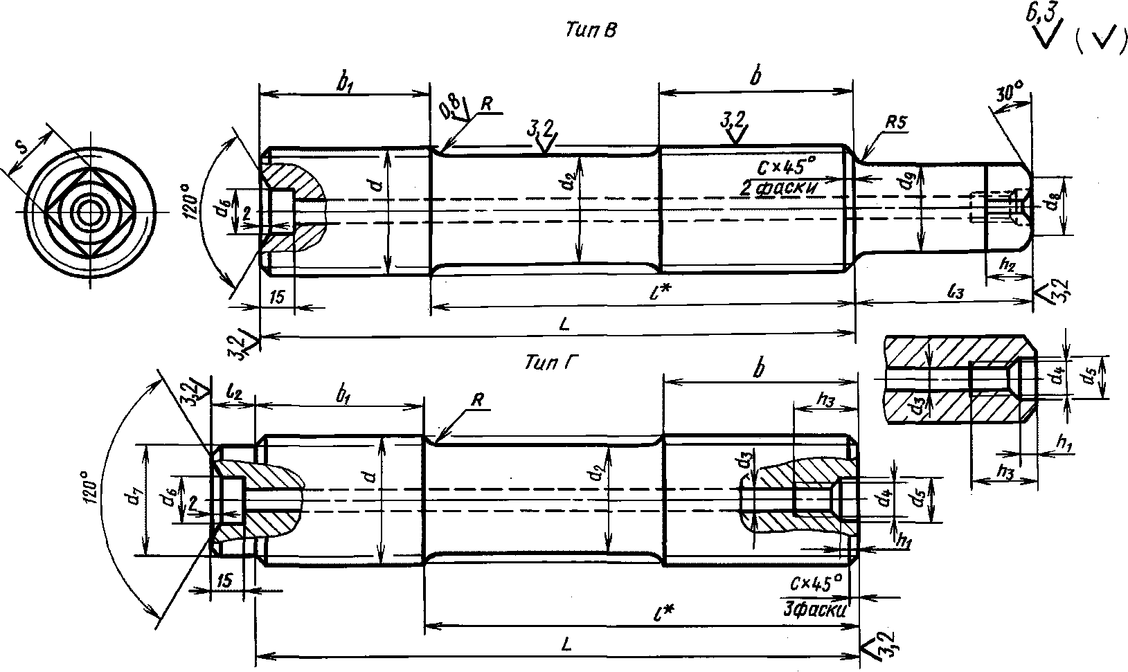 Глубина резьбы осевого отверстия h3 для шпилек типов В, Г, Д | - | 30 | |||||||||||||||