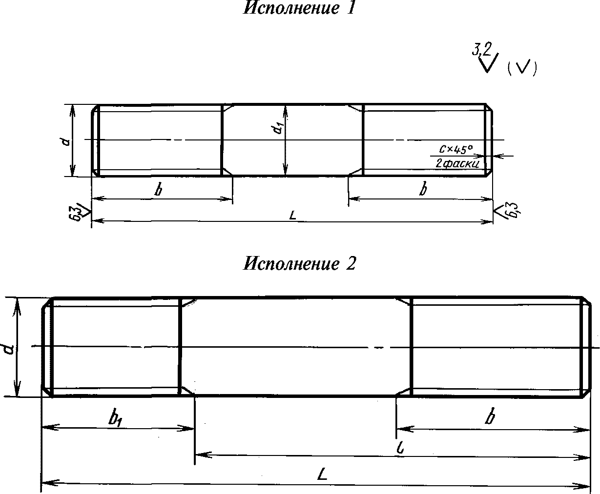 Диаметр гладкой части | для шпилек типа А | d1 | По ГОСТ 19258-73 и ГОСТ 19256-73 | ||||||||||||||