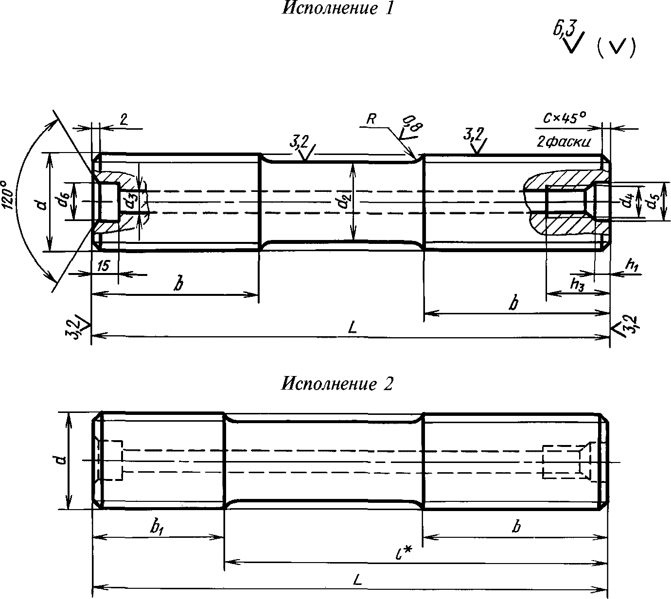 Глубина резьбы осевого отверстия h3 для шпилек типов В, Г, Д | 30 и 50 | 50 | 75 | ||||||||||||