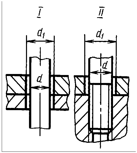 3. При совместной обработке отверстий в деталях соединения (для заклепочных и неразбираемых болтовых соединений) номинальный диаметр сквозного отверстия рекомендуется принимать равным наибольшему предельному размеру диаметра стержня крепежной детали. При этом отверстия должны быть раззенкованы на размер, соответствующий переходному радиусу между головкой и стержнем.