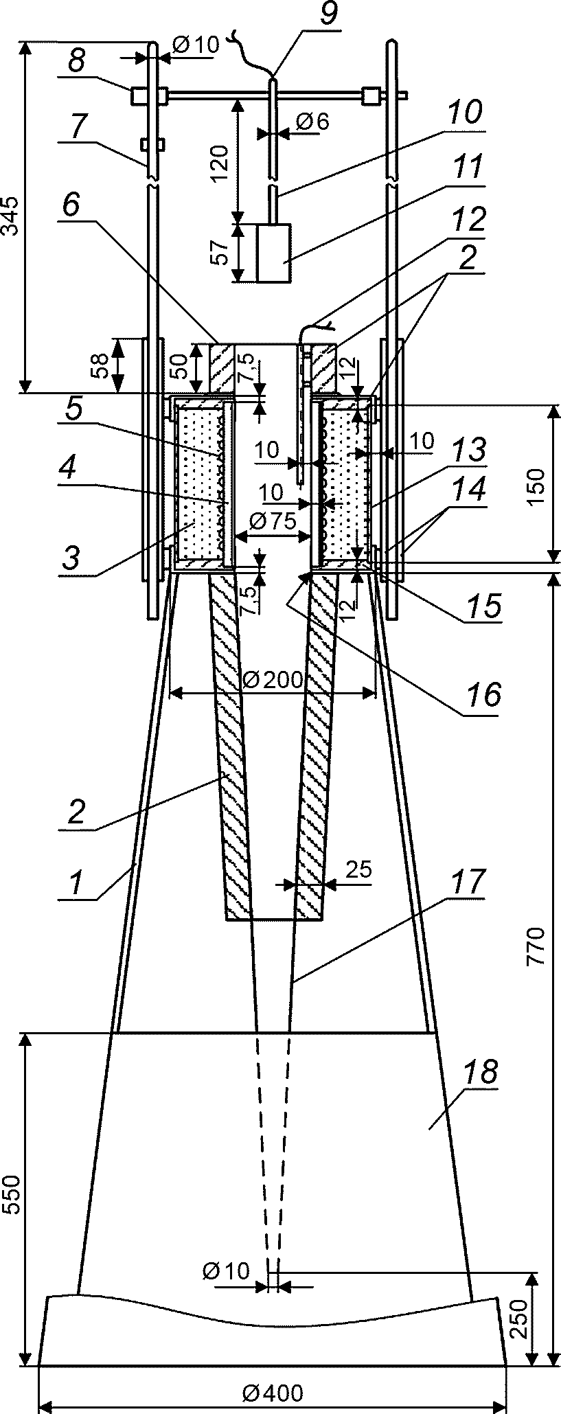 Номер испытания | Напряжение на вибраторе, В | Расстояние между распылителем и электродами h, мм | Разрядный промежуток l, мм | Напряжение на конденсаторе, кВ | Емкость конденсатора, пФ | Число искровых разрядов n | Число воспламенений m | Энергия искрового разряда, мДж |