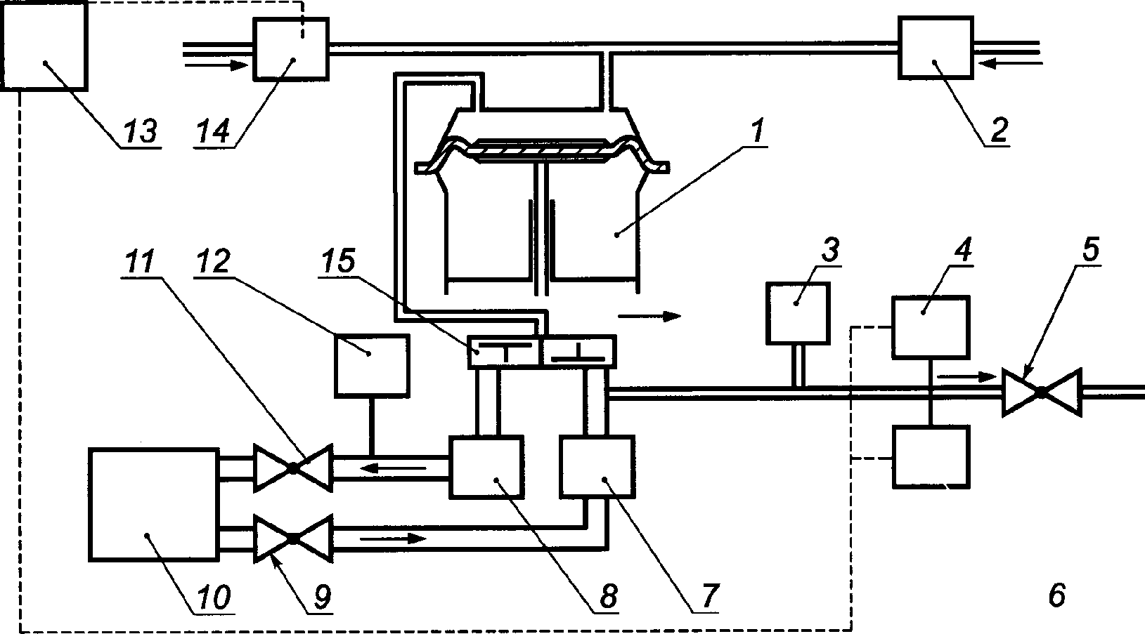 клапан; 6 - газоанализатор кислорода; 7 - холодильник;