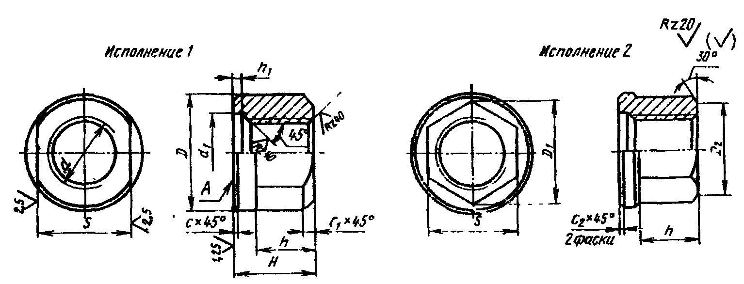2. Конструкция и размеры гаек должны соответствовать указанным на чертеже и в таблице.