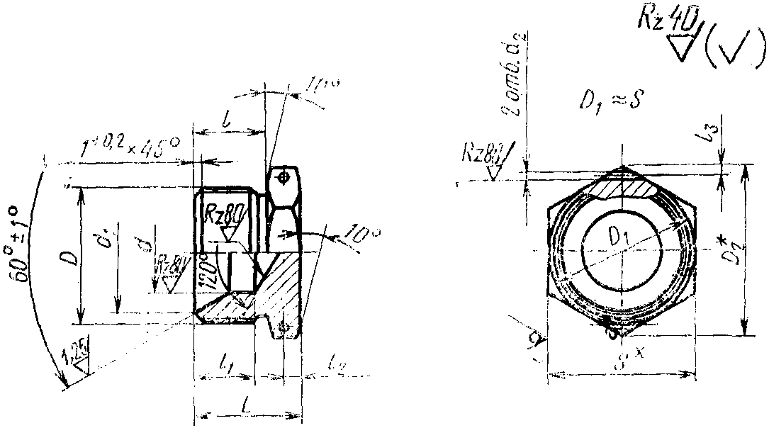 Пример условного обозначения конусной заглушки к трубопроводу Dн 16 из стали марки 45: