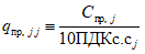 - приземная концентрация j-го ЗВ, создаваемая выбросом рассматриваемого объекта, рассчитанная по утвержденной в установленном порядке методике, мг/м3;