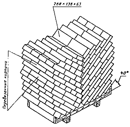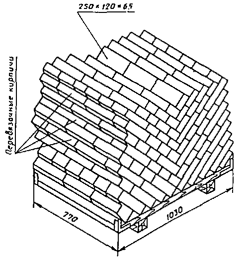 6.2. Укладка кирпича и камня на поддоны должна производиться с соответствующей перевязкой рядов, обеспечивающей сохранность и устойчивость пакетов при транспортировании. Схемы различных способов укладки пакетов приведены в рекомендуемом Приложении.